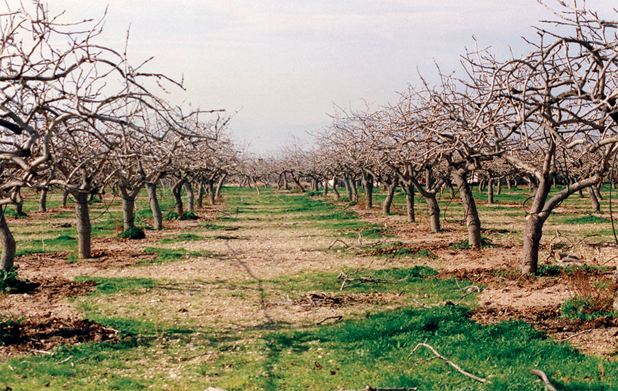 Από το Νοέμβρη τα φύλλα αρχίζουν να πέφτουν (εικ. 2) και τα δέντρα παραμένουν γυμνά μέχρι τα τέλη Μάρτη. Σ’ αυτή την περίοδο του λήθαργου τα χωράφια λιπαίνονται, οργώνονται και τα δέντρα κλαδεύονται.